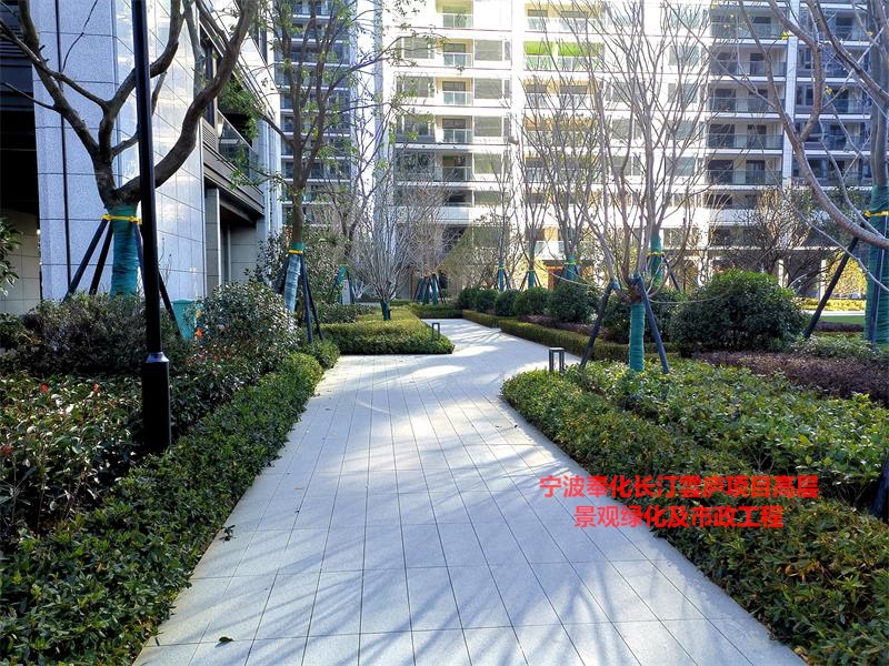 寧波奉化長(zhǎng)汀雲(yún)廬項(xiàng)目高層景觀綠化及市政工程位于寧波市奉化區(qū)長(zhǎng)汀村,是寧波市高端住宅小區(qū),該項(xiàng)目總景觀面積約50000平方米,綠地面積26708平方米,綠地占53.4%,合同造價(jià)3489.2898萬(wàn)元,工程自2020年6月4日開(kāi)工,于2020年9月28日竣工,該工程的建設(shè)單位為寧波奉化綠城浙宏房地產(chǎn)開(kāi)發(fā)有限公司;設(shè)計(jì)單位為綠城衡宇環(huán)境設(shè)計(jì)有限公司;監(jiān)理單位為浙江工正工程管理有限公司;施工單位為浙江三葉園林建設(shè)有限公司。2020年度被浙江省風(fēng)景園林學(xué)會(huì)評(píng)為“浙江省園林綠化工程安全生產(chǎn)文明標(biāo)準(zhǔn)化工地”。