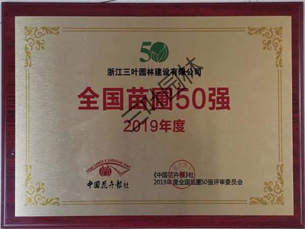 - 喜訊三葉園林榮獲"全國(guó)苗圃50強(qiáng)"