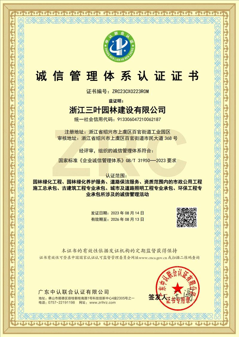 - 三葉園林誠信體系復(fù)審成功