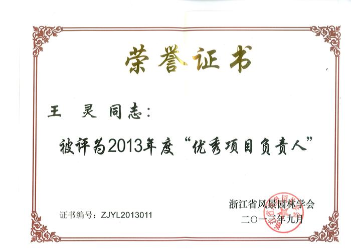 近日,根據(jù)《關(guān)于開展2013年度浙江省“優(yōu)秀園林工程”獎(jiǎng)評(píng)審工作的通知》及《關(guān)于2013年度浙江省“優(yōu)秀園林工程獎(jiǎng)”分設(shè)獎(jiǎng)項(xiàng)申報(bào)評(píng)審的補(bǔ)充通知》“2013年度浙江省優(yōu)秀園林工程”金獎(jiǎng)項(xiàng)目獲得企業(yè)填報(bào)和學(xué)會(huì)審核,授予王靈同志為2013年度浙江省風(fēng)景園林學(xué)會(huì)“優(yōu)秀項(xiàng)目負(fù)責(zé)人”稱號(hào),現(xiàn)予公布表彰。希望王靈同志,再接再厲,進(jìn)一步提升項(xiàng)目管理水平,確保施工工程質(zhì)量,創(chuàng)建更多的園林精品項(xiàng)目,為園林綠化事業(yè)作出更大貢獻(xiàn)。