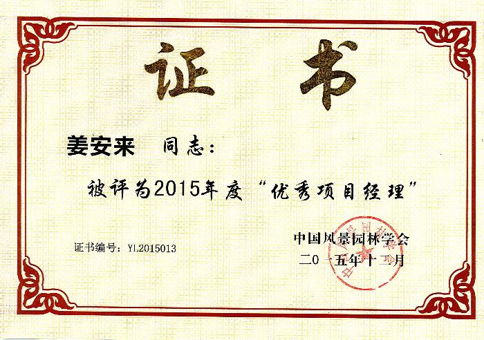 大會(huì)首先宣讀了獲獎(jiǎng)文件:《關(guān)于授予“2015年度中國(guó)風(fēng)景園林學(xué)會(huì) 《優(yōu)秀項(xiàng)目經(jīng)理》”名單的通知》接著,舉行了隆重的頒獎(jiǎng)儀式。其中,浙江三葉園林建設(shè)有限公司工程師姜安來(lái)同志獲評(píng)2015年度“優(yōu)秀項(xiàng)目經(jīng)理”。